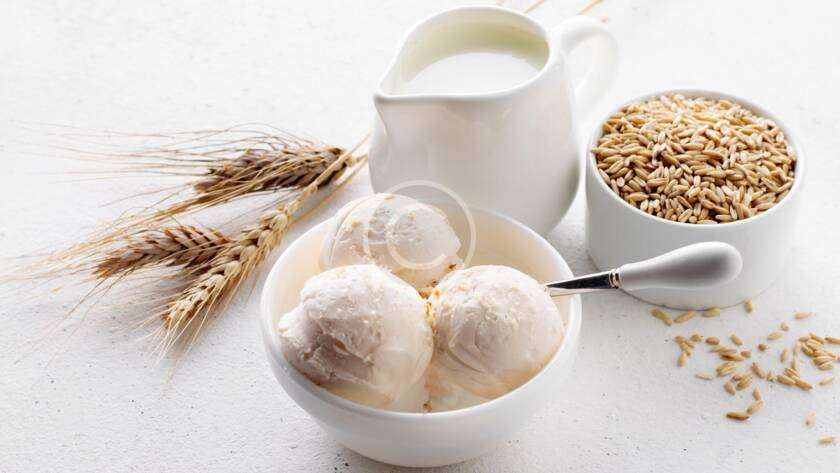 Natural ice cream made from organic milk with crispy seeds